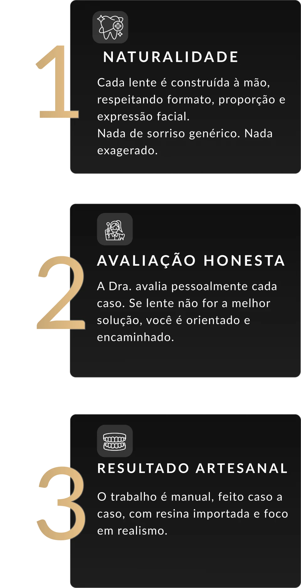 A própria Dra. analisa o seu caso e, se lentes não forem indicadas, você é orientado ou encaminhado para outro tratamento.